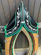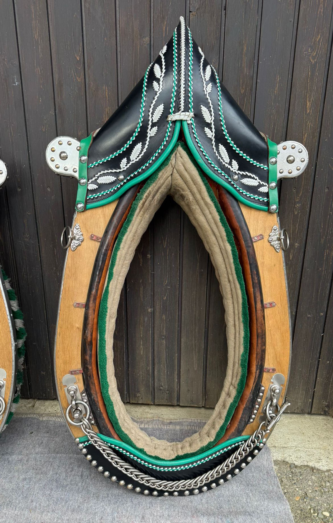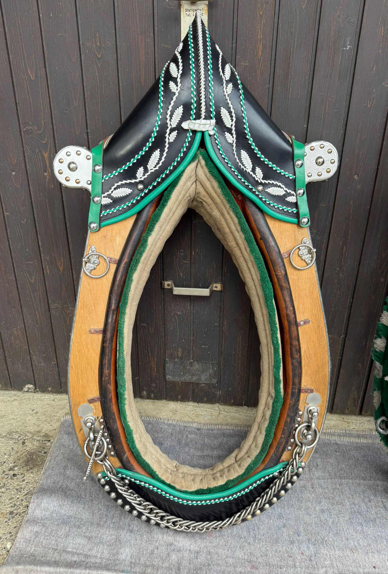 Festgeschirr Kummets schwarz-grün mit Blumenstickerei