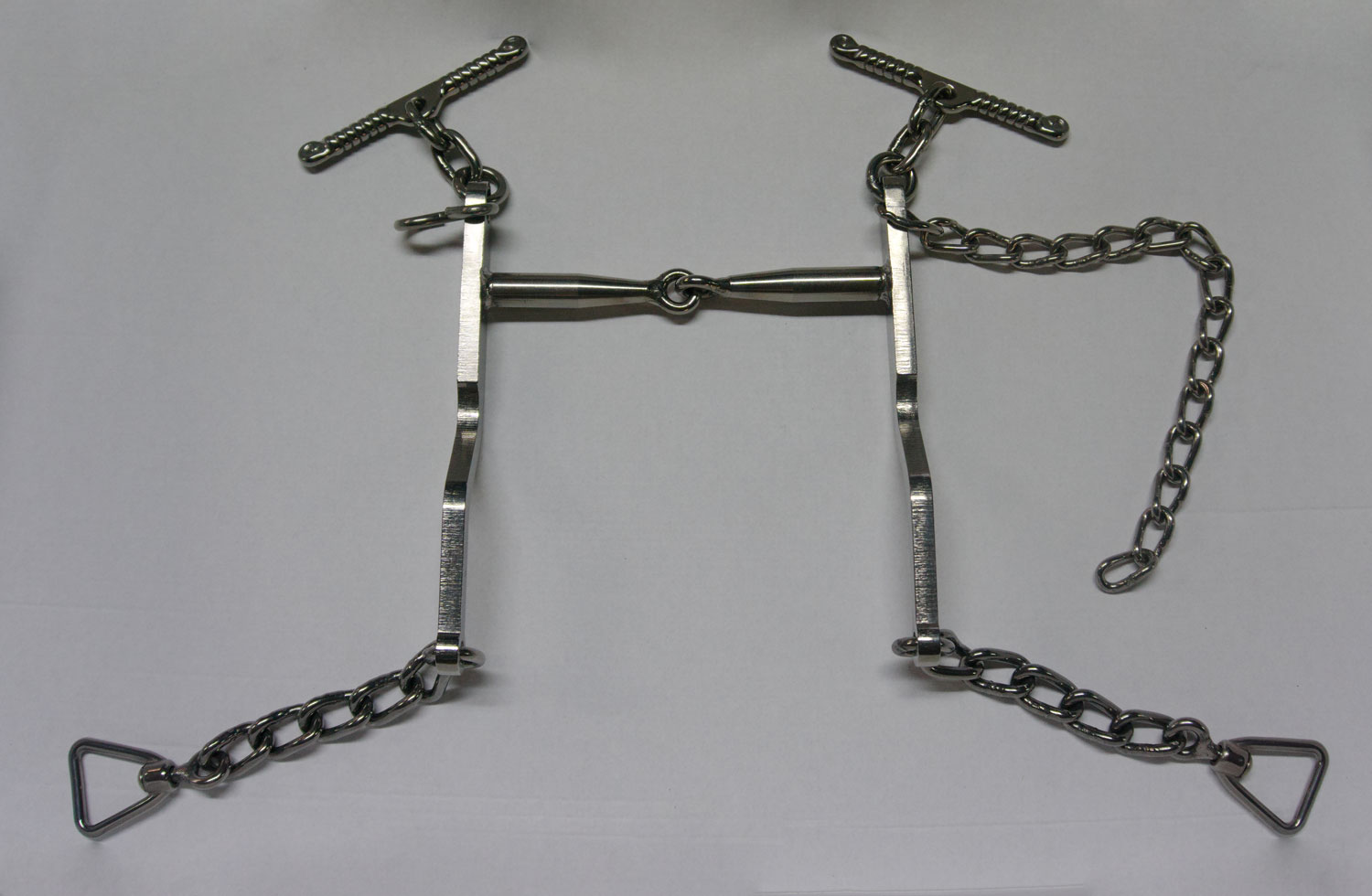 Unsere Edelstahl-Postkandaren mit Knebeln sind auch mit gebrochenem Mundstück lieferbar: mit zwei Anzügen als auch mit drei Anzügen