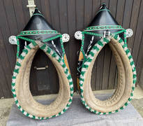 Festgeschirr Kummets schwarz-grün mit Blumenstickerei