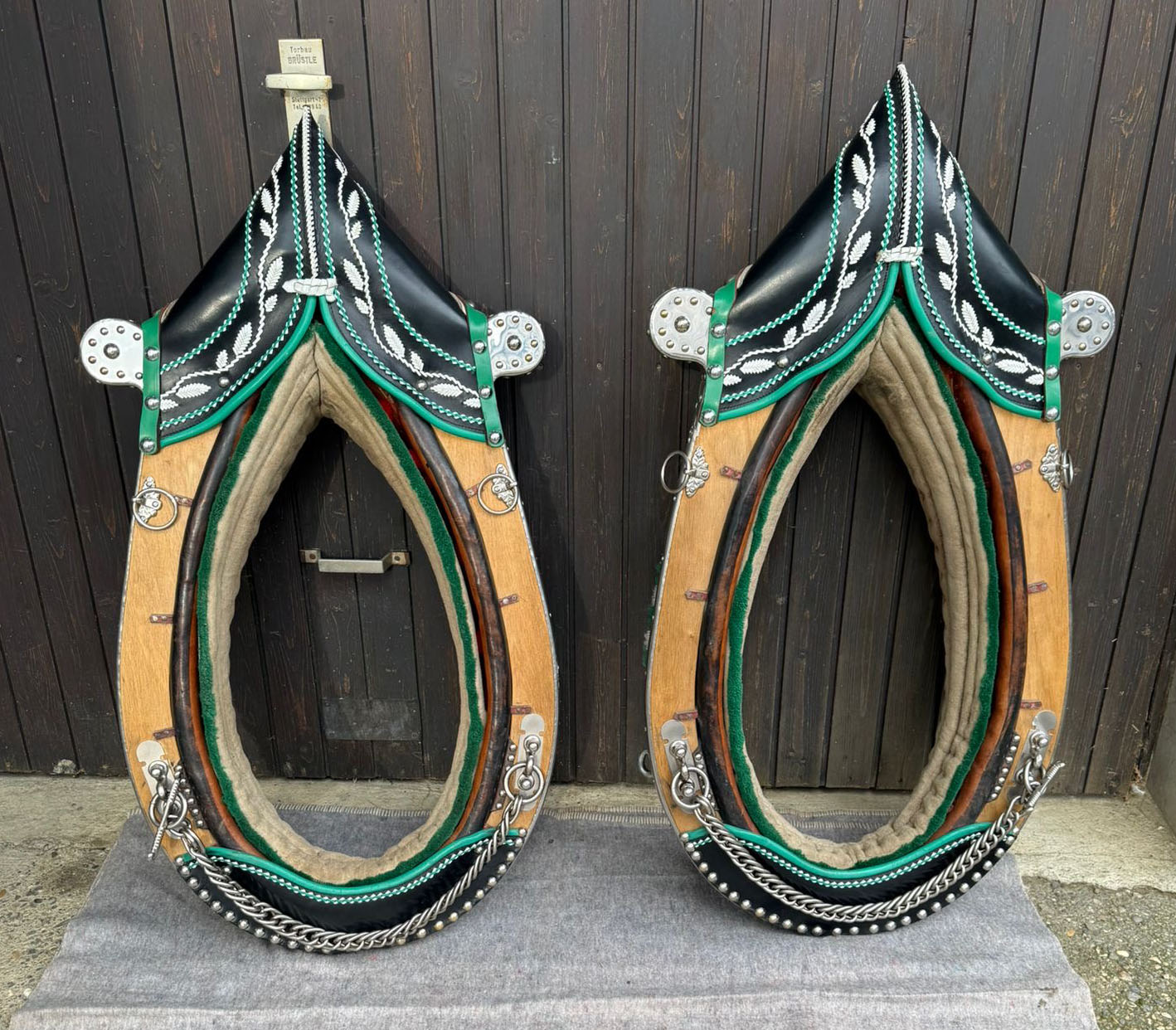 Kummet, Ruckschlag, Hintergeschirr, Halfter, Gebiss und Leine