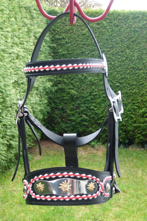 13c braun-blau mit Nasenbandblech + Edelweiß, Stirnband mit Rolleinfass
